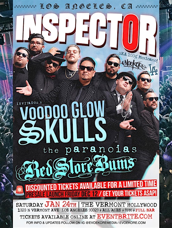 Latin Ska legends collide! Inspector live in Los Angeles with special guests Voodoo Glow Skulls! Tickets on sale now